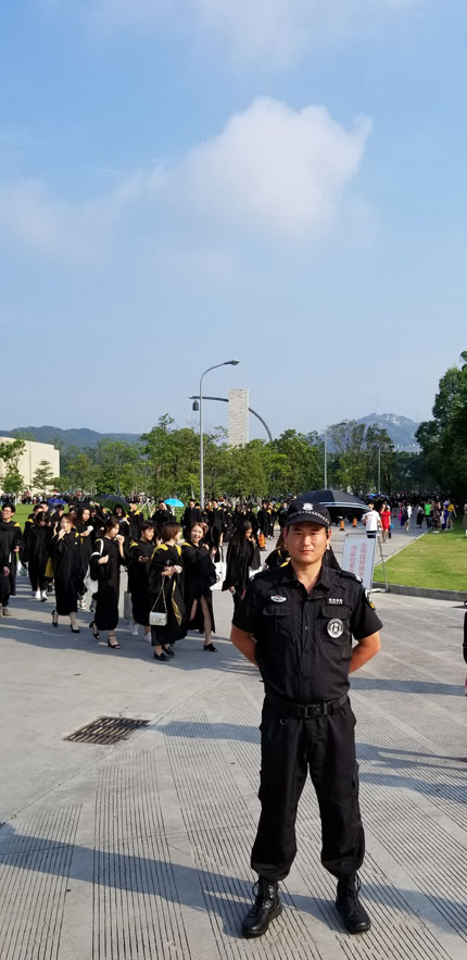 我司鐵保宏泰保安公司出動(dòng)數(shù)十名保安人員到汕頭大學(xué)為2018畢業(yè)典禮安保護(hù)衛(wèi)做貢獻(xiàn)。