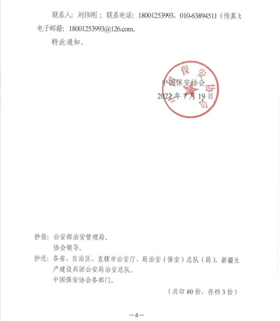 中國保安協(xié)會(huì)發(fā)布《關(guān)于組織做好保安行業(yè)主題日宣傳活動(dòng)的通知》(中保協(xié)【2022】13號(hào)),通知指出,公安部治安管理局決定在7月24日組織開展以“喜迎二十大、保安護(hù)平安”為主題的全國保安行業(yè)主題日宣傳活動(dòng)。